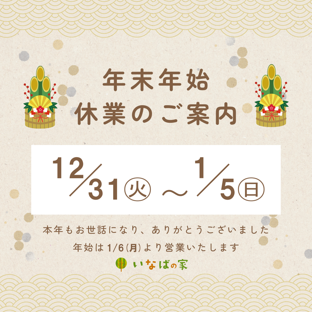 2024年12月31日(火)~2025年1月5日(日)まで休業いたします。1月6日(月)より通常営業となります。