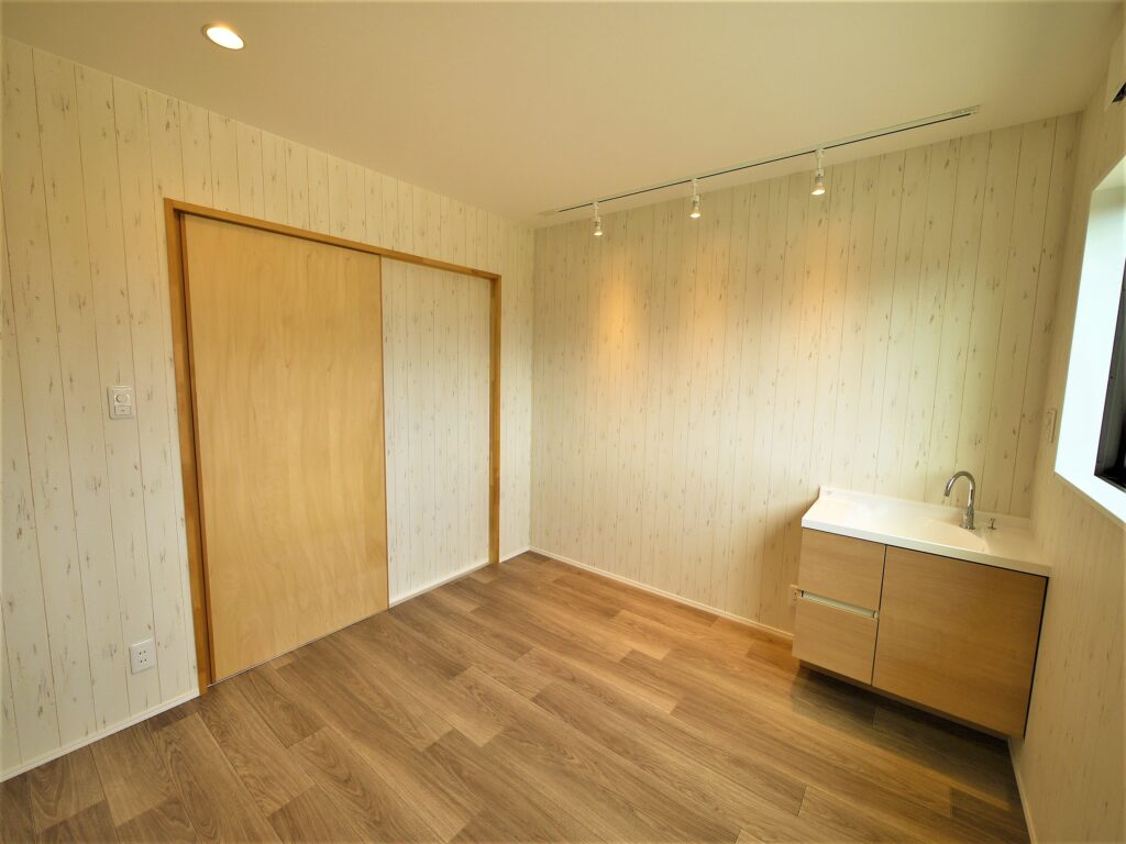 併設のエステルームには、コンパクトな造作洗面台を設置。