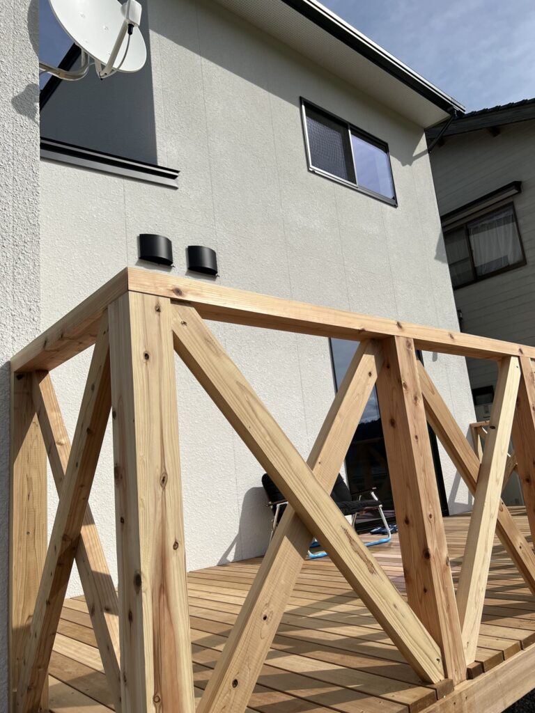 シンプルな外観に、無垢の造作手すりがほどよい表情と温かみを添えているのもポイントです。