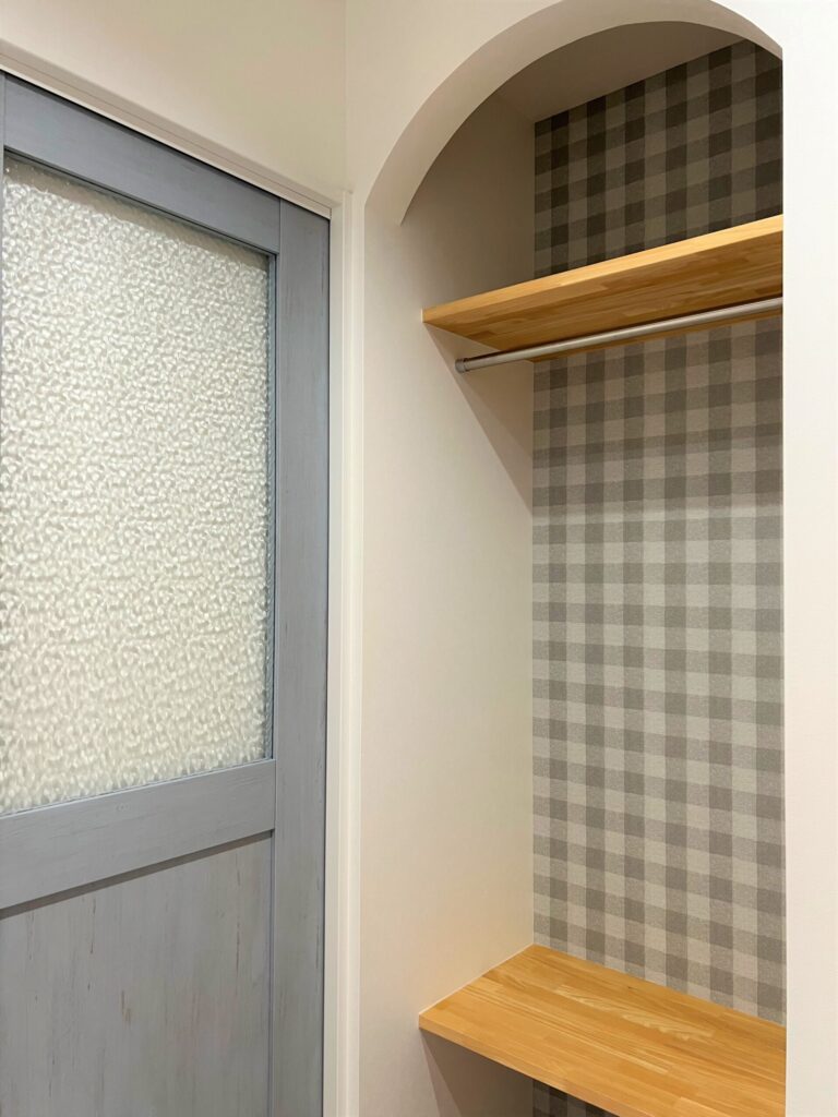 玄関横には、アーチ型の開口が印象的な収納スペースを設けました。