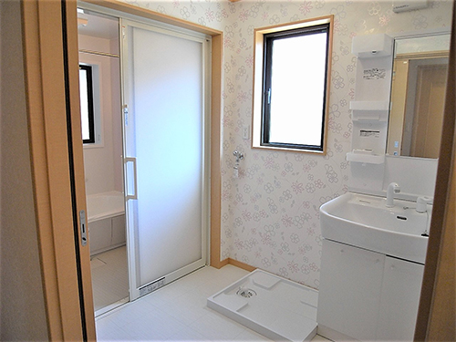 玄関や脱衣所にはきらきらすてきな照明をつけてあります。ちょっとしたこだわりがセンスを感じさせるステキなお家です。