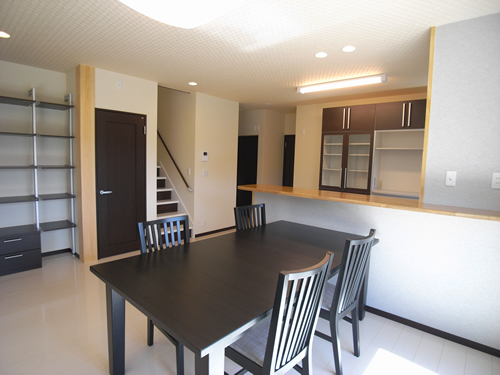お施主さまと何度も何度も話しあって決めるのが弊社の家づくり。打合わせを重ねる中で決まったコンセプトは、「白と黒(茶)」のツートンカラーで統一された「大人スタイル」。家の雰囲気を一緒につくってくれる家具も、「大人スタイル」に合うものを一緒に選びました。