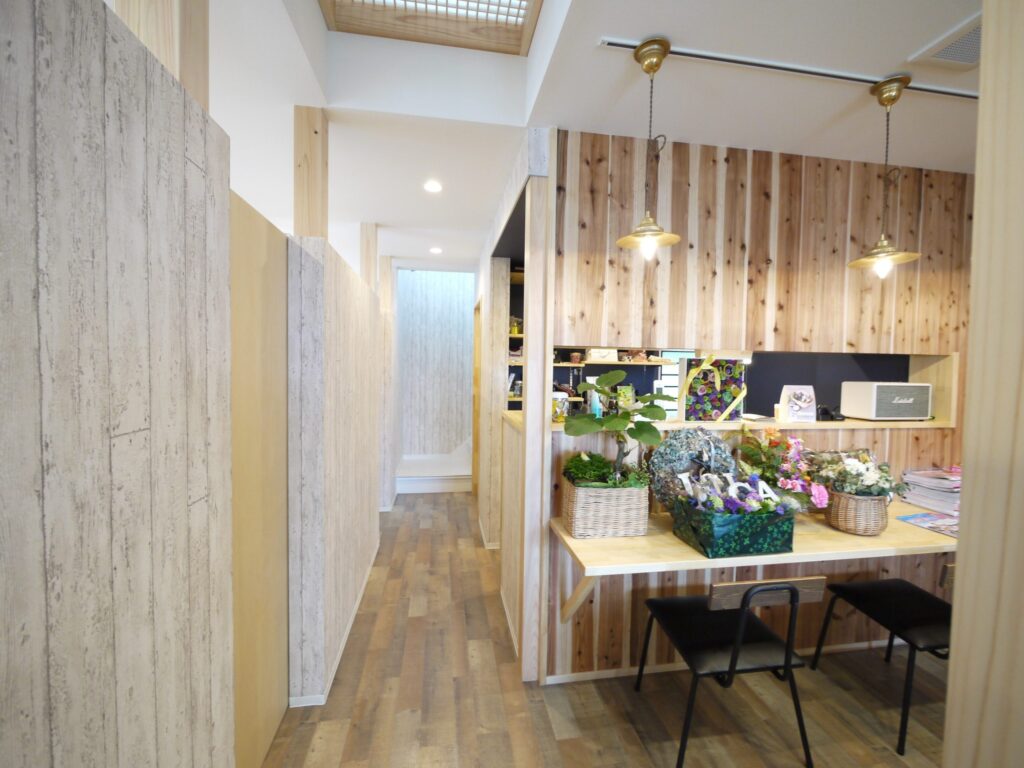 木のぬくもりいっぱいのやわらかい空間がお客様を癒します。待合では髪に関する相談もゆっくりしていただけます。