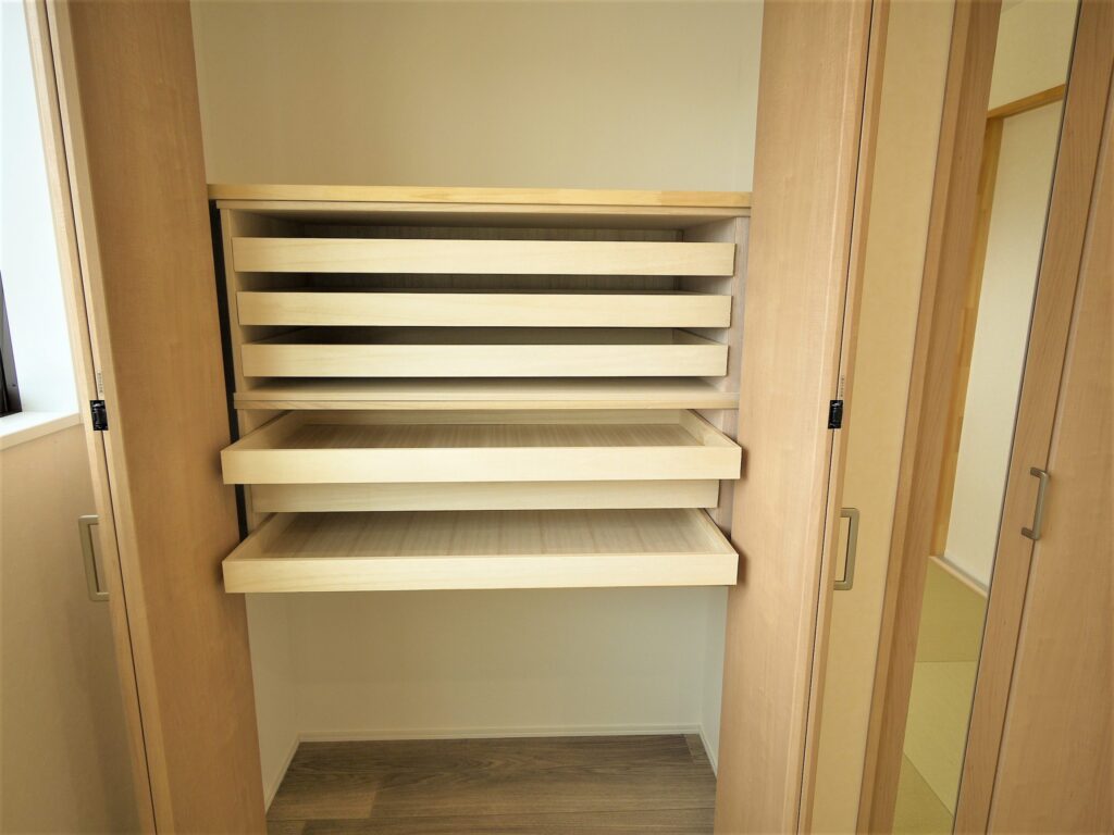 桐のタンスいっぱいに着物や小物をしっかりと収納できます。