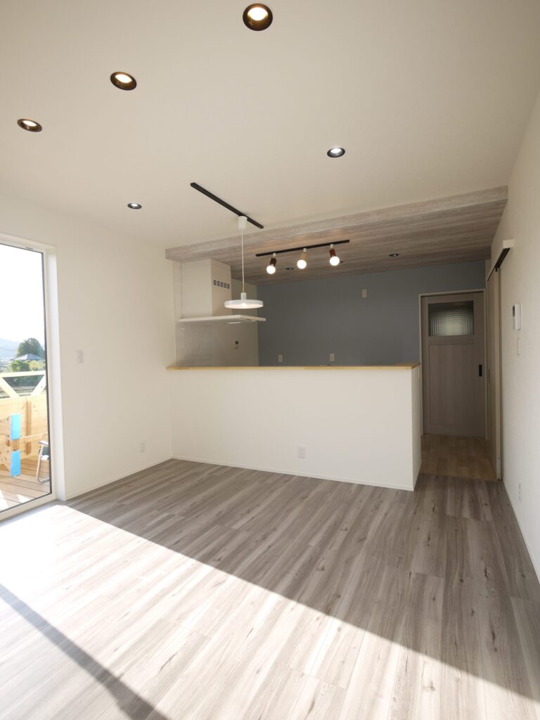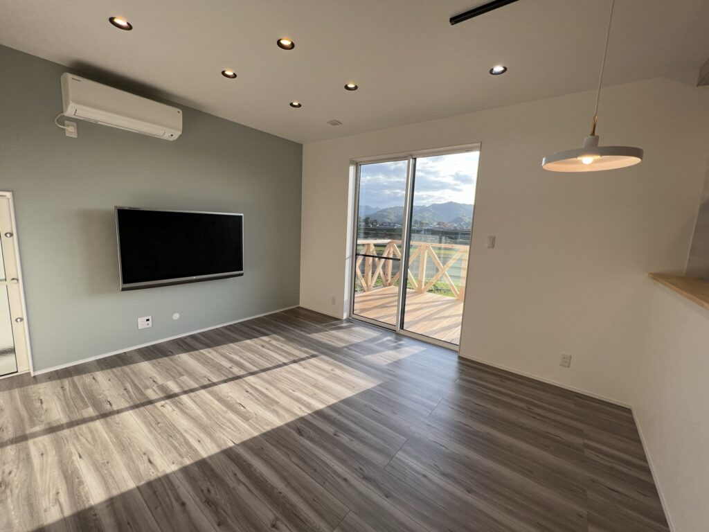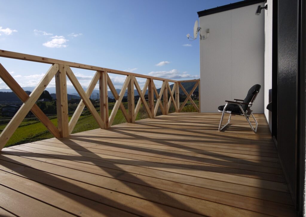 見晴らしのよい高台の立地を生かしてウッドデッキもつけました。晴れた日はウッドデッキに出てバーベキューもできそうです。