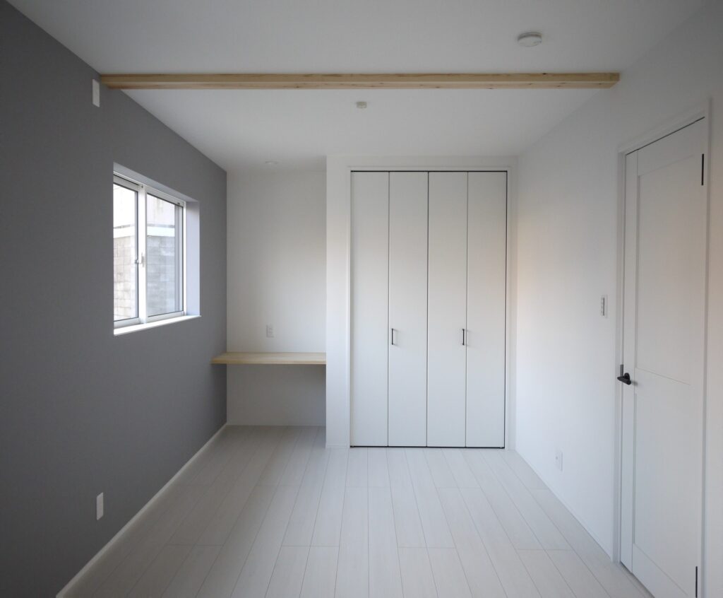 近隣を気にせず過ごせるよう2階にリビングを配置。居室はあらかじめ家具や家電の位置を決めてコンセントの高さや数を決定。クローゼットを大きく取って寝室はすっきりと、いざという時にも慌てない暮らしを実現しました。スーパーウォール工法ならではの遮音性を実感していただける造りになっています。