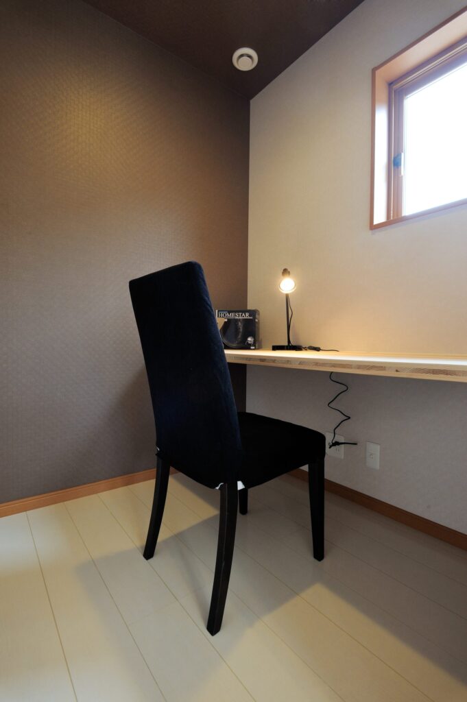 寝室から数歩でたどり着く静かなプライベート空間。扉を閉めれば集中、開ければ家族の気配を感じるちょうどよい距離感です。