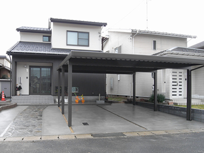 カーポートの色も選べますし、地面をアスファルトにしたり、煉瓦調にしたり、タイル張りにしたりすることで